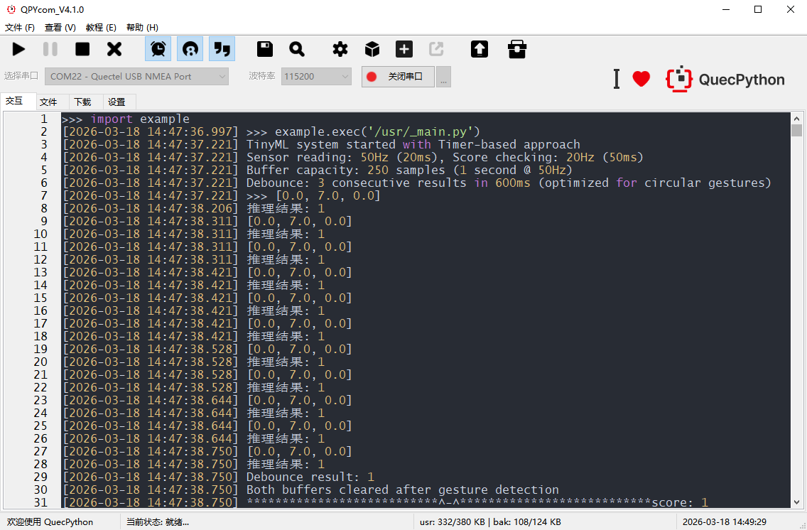 - 极致轻量:整个推理过程在 QuecPython 环境下运行,内存占用极低,普通模组也能跑得飞起。