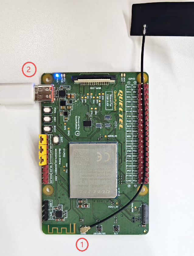 Quectel USB 字样的 COM 口,表示开机成功