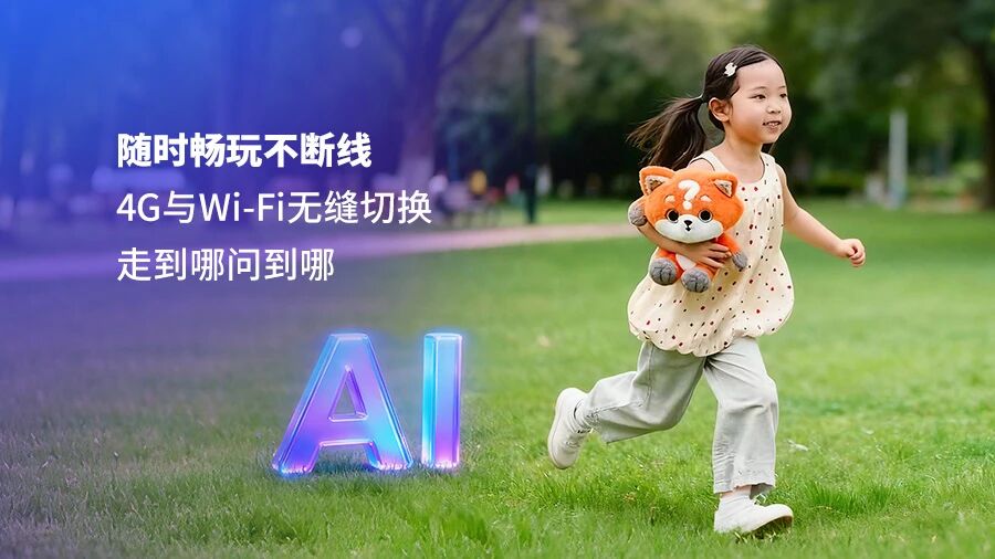 对孩子来说,每天2小时的户外时光必不可少。为了让 “小熊猫问问”时刻在线,移远基于EC800M-CN LTE Cat 1.bis无线通信模组打造的AI玩具方案,不仅支持稳定的4G蜂窝连接,还能无缝切换至Wi-Fi网络,无需家长频繁手动设置。有了这份全场景在线buff加持,孩子无论是在家探索,还是去户外撒欢,都能随时与小熊猫流畅互动,享受不间断的语音问答、故事点播,真正实现"走到哪,陪到哪"。
