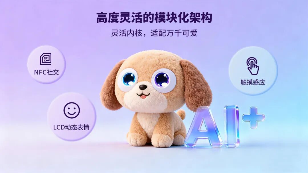 针对玩具市场“多品类、快迭代”的需求,Animator采用高度灵活的模块化架构,支持触摸感应、LCD动态表情、NFC社交等功能模块的自由选配。企业可以根据产品市场定位,快速适配低-中-高端毛绒玩具市场需求。
