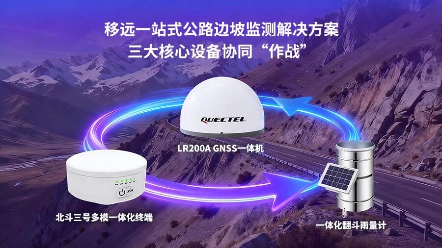 面对上述行业痛点,移远通信凭借在GNSS高精度定位与无线通信领域的深厚技术积累,推出自研的一站式公路边坡监测解决方案。